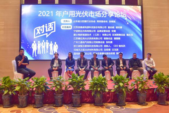 年會(huì)的最后,山東省太陽(yáng)能行業(yè)協(xié)會(huì)常務(wù)副會(huì)長(zhǎng)張曉斌主持了對(duì)話環(huán)節(jié)。廣州三晶電氣、固德威、愛士惟、歐達(dá)光電、河南天之航、國(guó)網(wǎng)新能源云等嘉賓參加對(duì)話。大家對(duì)分布式光伏發(fā)展的熱點(diǎn)、難點(diǎn)、焦點(diǎn)進(jìn)行了探討和總結(jié),精彩的對(duì)話博得臺(tái)下陣陣掌聲。