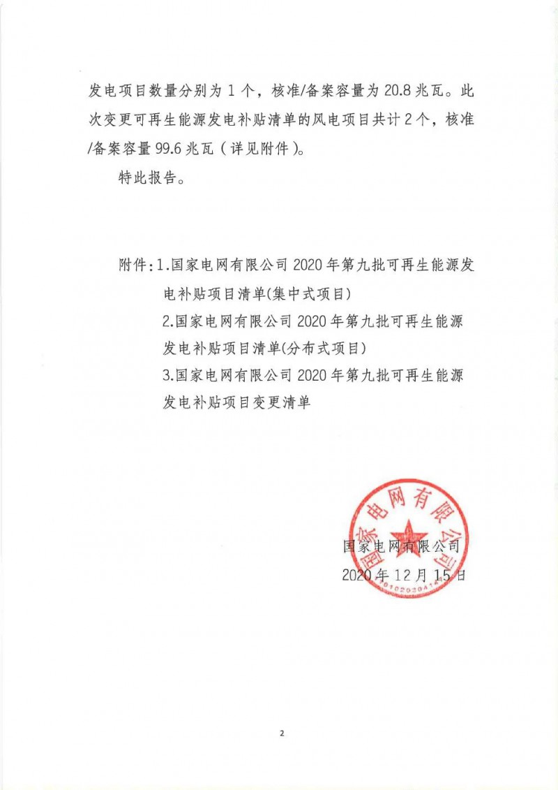 2020年12月15日,我公司已將完成公示的第九批次可再生能源發電項目補貼項目清單上報國家主管部門,后續將陸續完成首批(詳見財辦建〔2020〕6號有關規定)補助項目清單審核發布工作。第九批次項目清單及首批后續項目審核進展情況,請登錄新能源云平臺查詢。