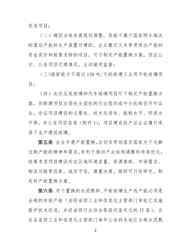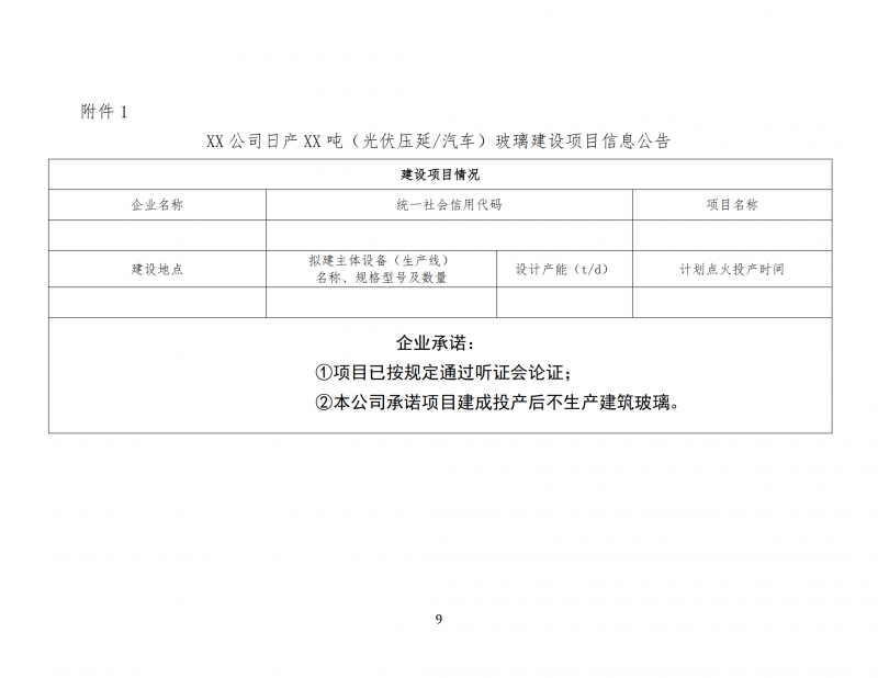 光伏壓延玻璃和汽車玻璃項(xiàng)目可不制定產(chǎn)能置換方案,但新建項(xiàng)目應(yīng)委托全國(guó)性的行業(yè)組織或中介機(jī)構(gòu)召開聽證會(huì),論證項(xiàng)目建設(shè)的必要性、技術(shù)先進(jìn)性、能耗水平、環(huán)保水平等,并公告項(xiàng)目信息(附件1),項(xiàng)目建成投產(chǎn)后企業(yè)履行承諾不生產(chǎn)建筑玻璃。