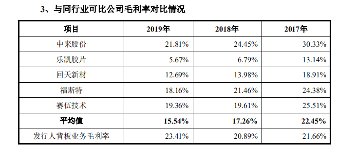 從幾個重要同行的可比角度來看,明冠新材的背板毛利率于去年達23.41%,次于中來股份,與福斯特、賽伍技術的毛利率較相似。可以關注的是,明冠新材在2019年的業務毛利率,相比2017年和2018年都略有增加。