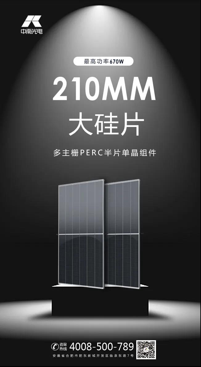 在光伏產業即將開啟平價新時代之際,更高效率和更大功率的組件正在成為主流。尤其是在2019年末,210mm尺寸的大硅片迭代而來。中南光電率先推出500W、550W、670W Mars系列超高功率組件,采用210mm電池、多主柵、半片切割等領先技術,將光伏從4.0時代帶到了5.0時代,再到6.0時代。