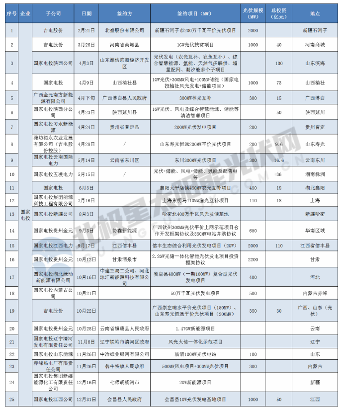 而據北極星太陽能光伏網不完全統計,截止2020年12月31日,國家電投及旗下公司已相繼簽約25個涉及光伏發電項目,總投資超566.2億元,其中已明確的光伏項目規模達13.06GW,地點遍布甘肅、廣西、山東、山西、貴州、河北、河南、湖北、湖南、江西、遼寧、內蒙古、陜西、新疆、云南、上海16個省區。