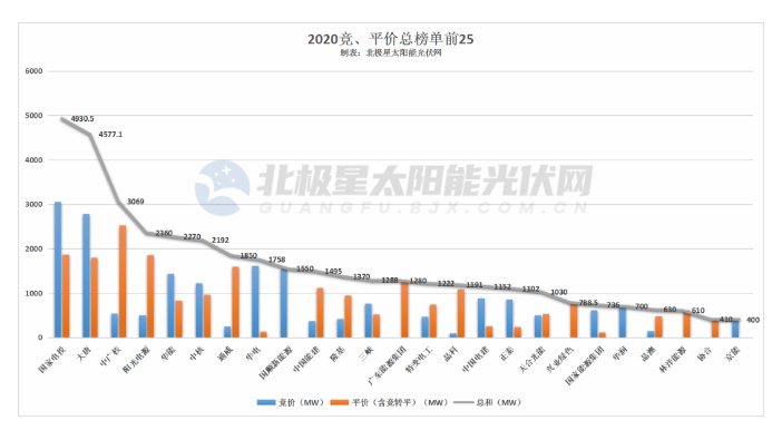 2020年我國光伏競、平價項目規模共計67GW,其中競價項目26GW,平價項目33GW,競價轉平價項目8GW。從電站業主類型來看,主要分為五大四小發電集團、地方國企、設計院系企業和民營光伏企業幾大類,國家電投以競價項目3056MW、平價項目(含競轉平)1874.5MW,總計4930.5MW的規模位列群企之首。