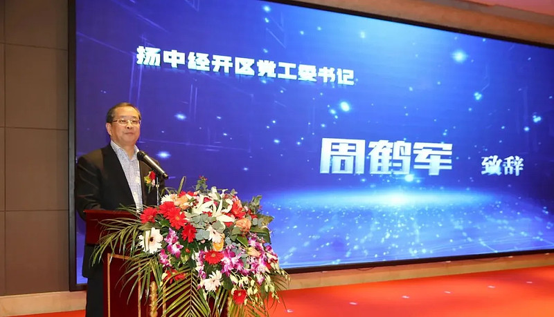 揚中市經濟開發區黨工委書記周鶴軍發表講話