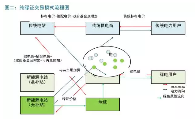 其中的關鍵點在于綠證價格和所謂綠電價的確定。綠電供應商提供有綠電屬性的電力合約,一方面像新能源電站支付可再生能源附加及綠證價格,另一方面向實際傳統電力供應商支付傳統電價。在國家可再生能源附加和其它政府基金一定的前提下,在輸配電價逐步核準的情況下,對歐洲推行綠證綠電的國家進行分析將或對如何使諸如此類交易變得合理有意義提供借鑒。