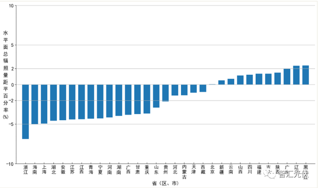 2)東三省、廣東等地區的發電量會好于2019年,但浙江、海南等地的發電量會比2019年差很多。各省相對于2019年的變化如下圖所示。
