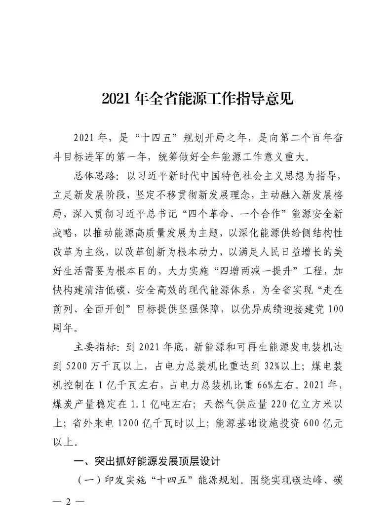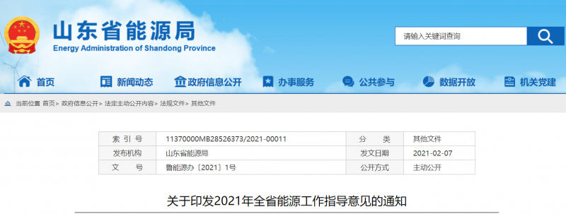 山東省能源局:關于印發2021年全省能源工作指導意見的通知