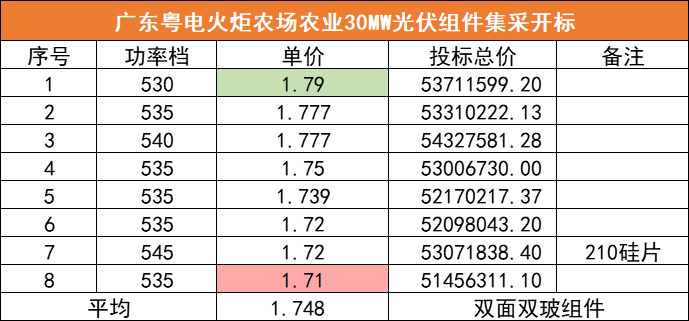 值得注意的是,上述廣東粵電30MW雙面組件投標均價較本周廣州發展1.08GW組件集采中的530-540W雙面組件投標均價,高出0.073-0.0855元/瓦,這也與兩個項目不同的組件交付時間密切相關。(廣州發展1.08GW組件開標詳情詳情點擊《雙面最高1.78元/W,TOP 4組件巨頭報價均無效!廣州發展1.08GW組件集采開標 》查看)