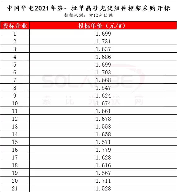 從中標價格來看,2020年華電組件開標價格在1.496~1.55元/W,但實際供貨情況不甚理想。今年的開標價格提高到1.528~1.779元/W,由5家企業分別供應,不知道能否解決電站投資企業的難題?