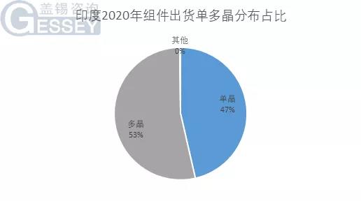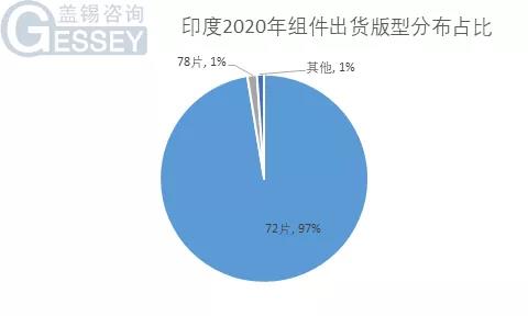 蓋錫數(shù)據(jù)顯示,截至2020年末印度市場光伏組件出貨量中,多晶組件占比53%,72片組件占比97%,330W,335W,405W位列功率占比前三名。多晶大版型在印度市場仍然占據(jù)較大比例。