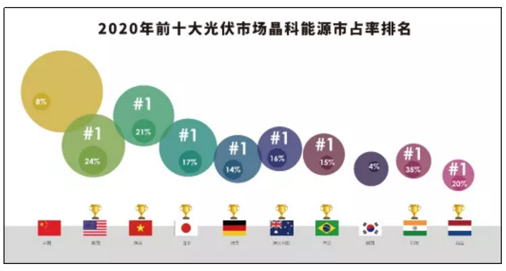 晶科太陽能是全球最大、最先進的太陽能電池板制造商之一,占據全球12.6%的市場份額2020年全球裝機量預計在120GW左右,其中80%來自于前十大光伏國家,晶科在包括越南在內的其中8個國家的市占率排名第一,越南市場市占率21%。