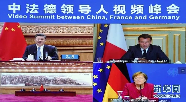 4月16日下午,國(guó)家主席習(xí)近平在北京同法國(guó)總統(tǒng)馬克龍、德國(guó)總理默克爾舉行中法德領(lǐng)導(dǎo)人視頻峰會(huì)。三國(guó)領(lǐng)導(dǎo)人就合作應(yīng)對(duì)氣候變化、中歐關(guān)系、抗疫合作以及重大國(guó)際和地區(qū)問題深入交換意見。