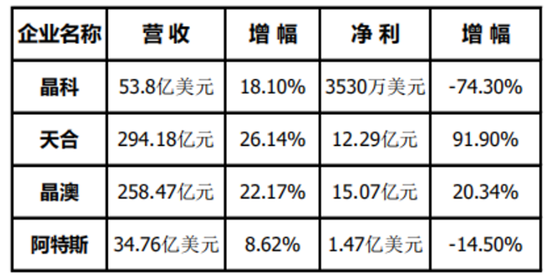 在四企中,營收增幅最大為天合,其凈利增幅同為最高,近92%。