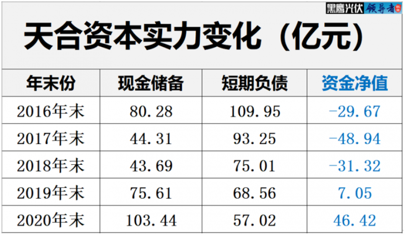 憑借登陸科創板,天合光伏現金儲備規模近乎達到了歷史最高值,截止2020年末現金儲備規模達103.44億元(貨幣資金與交易性金融資產之和),同比增長了36.81%,而同期短期負債規模為57.02億元,其雄厚的資本實力將為其產能擴張戰略提供有力支撐。