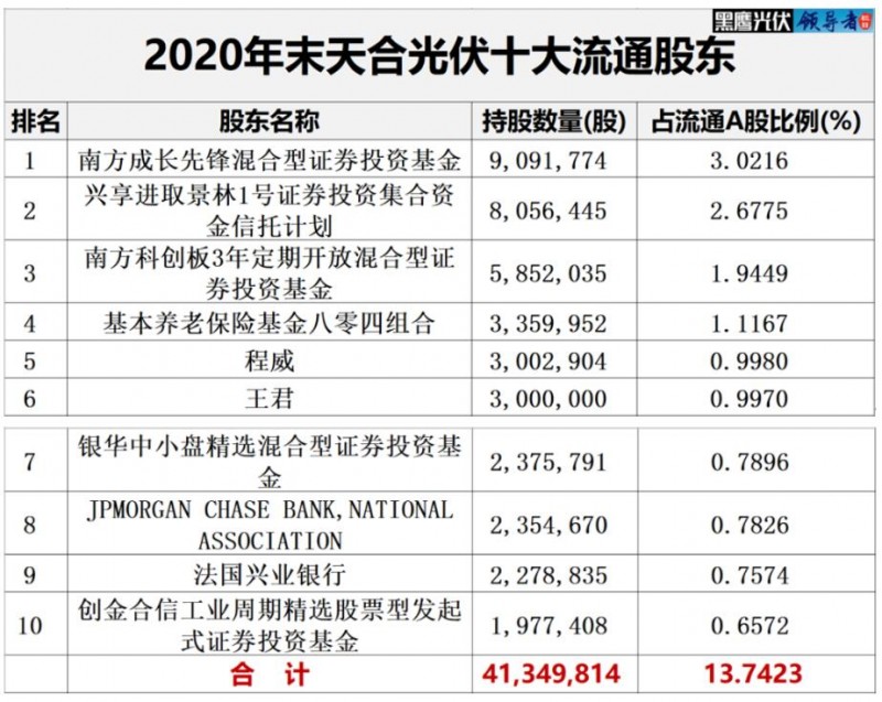 在天合光能前十大流通股東中還出現了多家頂級投資機構的身影,比如法國興業銀行、JPMORGANCHASEBANK、基本養老保險基金以及多家基金等等,前十大流通股東合計持股4135萬股,占流通股比例為13.74%。