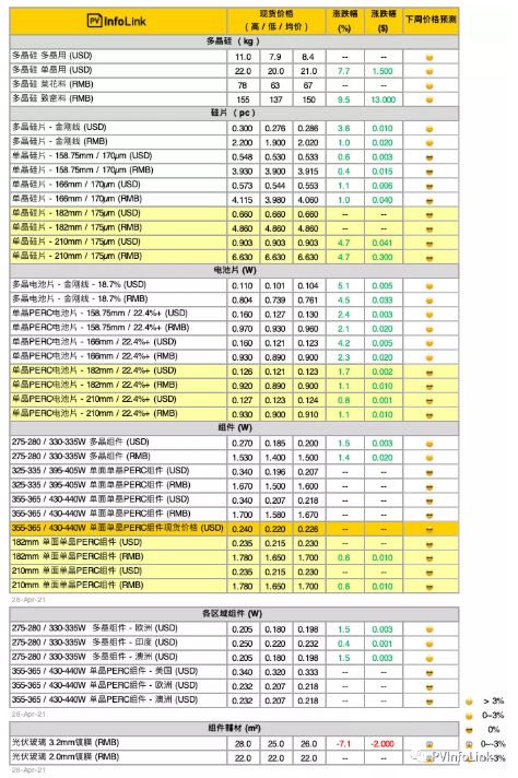 PV Infolink現貨價格信息中,人民幣價格皆為中國內需報價,而美金顯示之價格則為非中國地區的海外價格,并非人民幣直接換算美金。