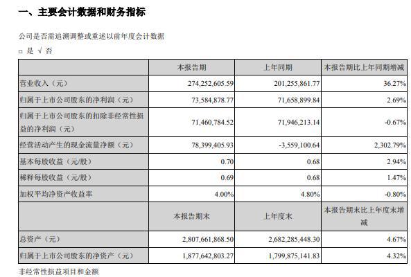 報告期內公司實現營業收入274,252,605.59元,同比增長36.27%;主要系光伏行業整體發展態勢較好,報告期內公司繼續聚焦主業,經營業績得以較快增長所致。
