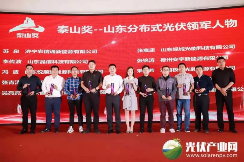 山東分布式光伏領軍人物獎,旨在表彰在山東光伏市場取得突出貢獻且能代表山東分布式光伏實力的企業家們;其開拓精神、創新思維、品質保障,對山東分布式光伏健康發展起到了積極的引領和推動作用。本次頒出的泰山獎-山東分布式光伏領軍人物30人,是山東16個地級市、137個縣區所有光伏人的縮影,是其中的優秀代表,也是我們光伏人的榜樣。榜樣不僅是一面鏡子,也是一面旗幟,能帶領我們更好的前行。
