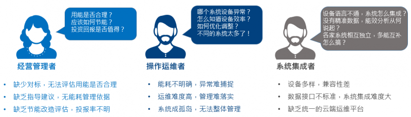 作為巨大的能量消費體,智慧園區、大型公建、智慧工廠等的節能改造、智慧供能、能源物業、能源托管成為構建智慧能源體系的主流選擇以及實現節能減排目標的重要領域。然而,在落實綜合能源管理服務過程中,由于設備數據只掌握在用戶一側,且設備間沒有形成互聯互通,導致數據的挖掘分析受阻,無法為客戶提供更進一步的綜合能源規劃、開發和服務,無疑給能源企業管理者、集成者及操作運維者帶來極大的困擾。