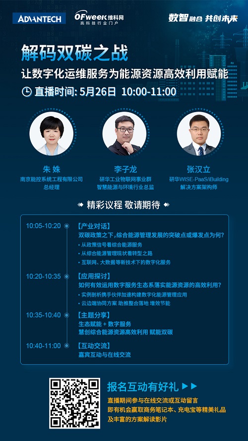 研華【解碼“雙碳”之戰,以數字化運維服務為能源資源高效利用賦能】在線直播,