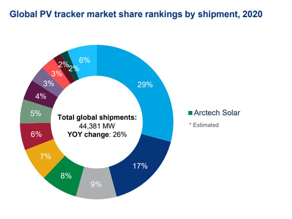 全球光伏跟蹤系統出貨量排名;數據來源:Wood Mackenzie Power& Renewables