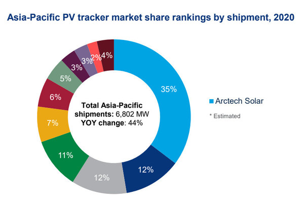 亞太市場光伏跟蹤系統出貨量排名;數據來源:Wood Mackenzie Power& Renewables