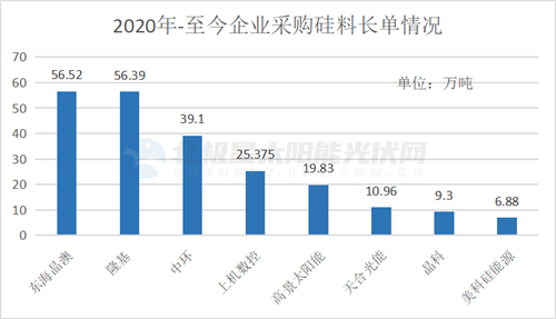 據北極星太陽能光伏網統計,自2020年以來晶澳科技發布了6次多晶硅長單采購協議公告,累計鎖定了56.52萬噸多晶硅料。