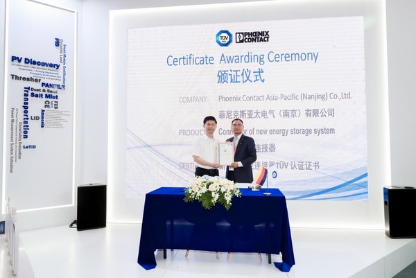 TÜV南德依照PPP51090A,針對菲尼克斯的這款新能源儲能連接器產品,進行了機械、電氣、環境等一系列項目的測試與評估,在歷時將近二個月的時間之后,菲尼克斯的該款新能源儲能連接器產品成功通過TÜV南德的檢測并收獲TÜV南德認證,收獲該證書是對菲尼克斯這款新能源儲能連接器產品性能及可靠性的雙重認可。TÜV南德許海亮在頒證儀式上對菲尼克斯亞表示祝賀并提到,“TÜV 南德將憑借在新能源領域先進的技術能力和豐富的經驗積累,助力企業在新能源產業發展道路上行遠致穩。”