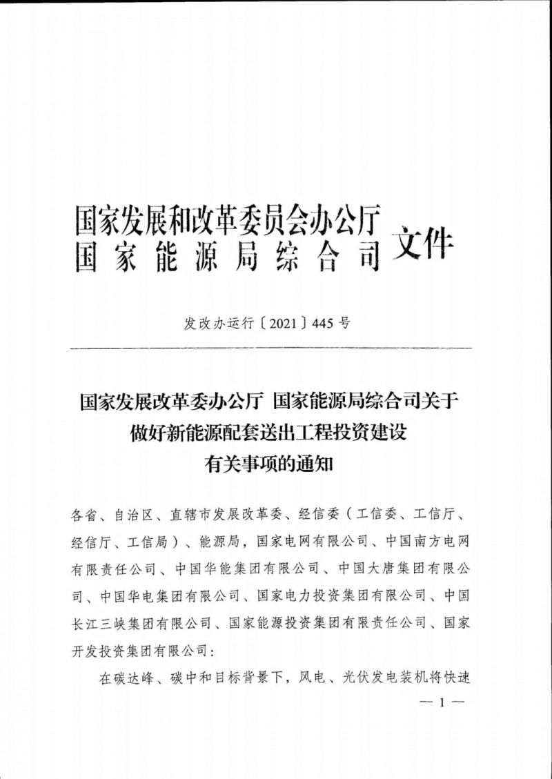 6月1日,國家發(fā)改委辦公廳、國家能源局綜合司聯(lián)合印發(fā)《關(guān)于做好新能源配套送出工程投資建設(shè)有關(guān)事項的通知》,提出:為更好推動我國能源轉(zhuǎn)型,避免風(fēng)電、光伏發(fā)電等電源送出工程成為制約新能源發(fā)展的因素,提出幾項措施: