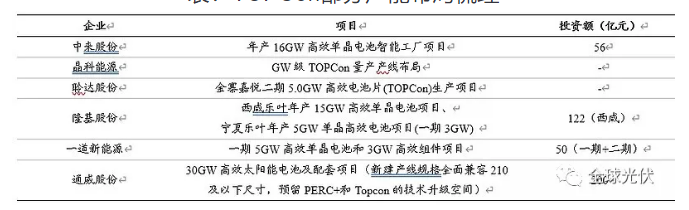 表:TOPCon部分產(chǎn)能布局梳理