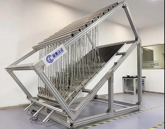 天合光能至尊670W系列產(chǎn)品的不均勻雪載測試在鑒衡認(rèn)證華東光伏檢測中心進(jìn)行。為了提供更好、更全光伏組件測試服務(wù),CGC經(jīng)過前期的設(shè)備研發(fā)、配件選型、技術(shù)攻關(guān),實(shí)驗(yàn)室人員技術(shù)培訓(xùn),已經(jīng)完全具備針對(duì)大尺寸組件IEC 62938:2020不均勻雪載的測試能力。
