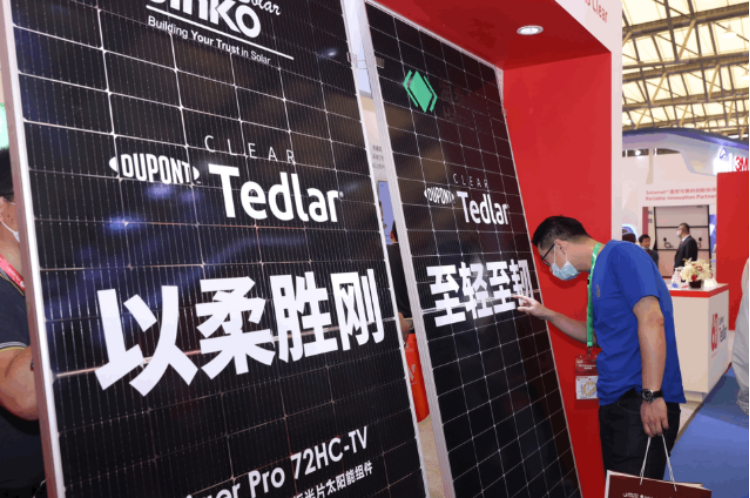 2021SNEC展會,杜邦推出新一代Tedlar®透明背板。Tedlar®透明背板靈活性較高,尤其針對1.2米以上的寬幅,可有效緩解大組件寬幅玻璃的結構性短缺問題和過重問題。付波介紹,隨著雙面+大尺寸技術在組件的應用比例提高: