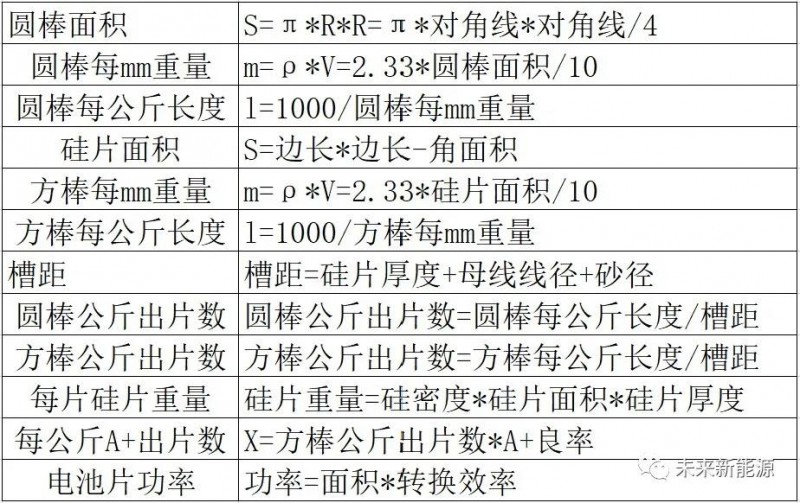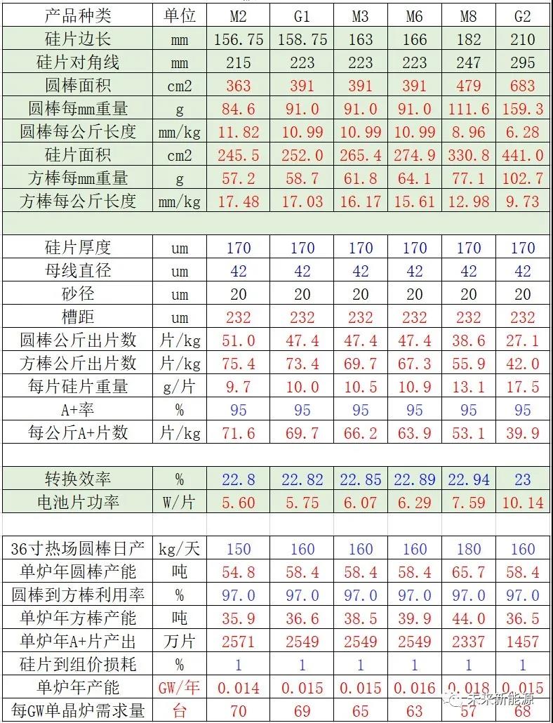 156.75mm為5.6W;158.75mm為5.75W;166mm為6.29W;182mm為7.59W;210 mm為10.14W;本文中黑色數字為固定值,紅色數值為計算值,藍色數值為假定值,