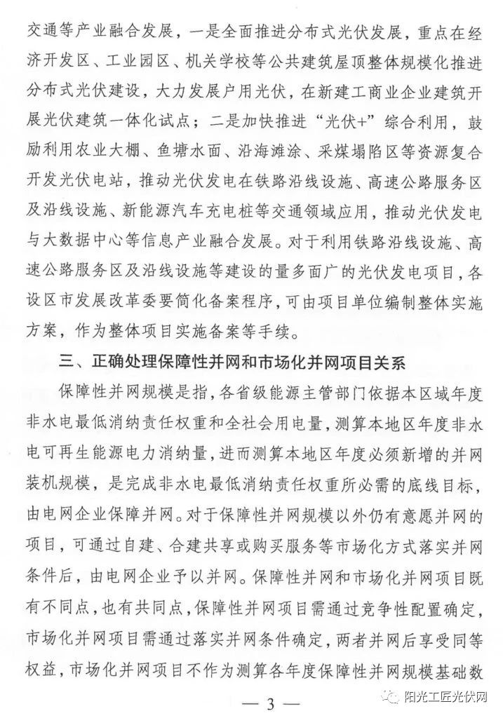 二是加快推進“光伏+”綜合利用,鼓勵利用農業大棚、魚塘水面、沿海灘涂、采煤塌陷區等資源復合開發光伏電站,推動光伏發電在鐵路沿線設施、高速公路服務區及沿線設施、新能源汽車充電樁等交通領域應用,推動光伏發電與大數據中心等信息產業融合發展。對于利用鐵路沿線設施、高速公路服務區及沿線設施等建設的量多面廣的光伏發電項目,各設區市發展改革委要簡化備案程序,可由項目單位編制整體實施方案,作為整體項目實施備案等手續。