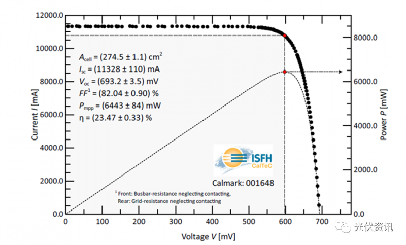 提升電池轉換效率是提升公司產品長遠競爭力的首要指標。此次破紀錄的太陽能電池是當前通威太陽能公司的拳頭產品:P型單晶雙面PERC太陽能電池。隨著近兩年硅片尺寸的不斷增大,大面積PERC電池的工藝難度和復雜性進一步提高。技術團隊通過對柵線圖案、陷光結構、擴散和鈍化工藝等量產化技術的最優集成,將M6 PERC電池的各項I-V參數都做了大幅度提升,從而創造了166全面積電池轉換效率的世界紀錄。