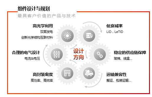 隆基的組件設計工作充分結合了理論模型、實驗結果及歷史經驗,綜合考慮了組件的功率&效率、發電能力及在各種場景下的可靠性。具體來說,隆基是從高光學利用、合理的電氣設計、高封裝密度、低衰減率、穩定的供應鏈保障、運輸兼容性六個方面來進行產品開發。比如在產品設計初期,就建立組件設計相關的光學、電學、力學模型,并進行模擬測算,選擇最優方案。