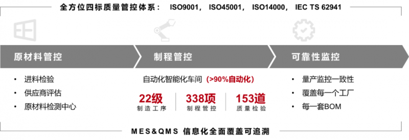 全方位四標質量管控體系:ISO9001,ISO45001,ISO14000,IEC TS 62941如四大門神,執著守護著隆基制造的生命線。隆基建有全面的質量管控體系,覆蓋原材料管控、制程監控、成品可靠性監控。特別值得一提的是,隆基全面引進了先進的信息化數據管理系統,貫穿整個質量管控體系,使得管理標準的執行和追溯更高效更透明。據了解,隆基組件工廠覆蓋了全球所有基地,目前已全面實現材料標準、質量標準、測試標準等一致性管控,確保所有出廠的隆基組件標準同步,品質如一。