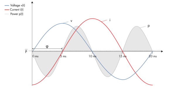 有功功率P和無功功率Q之和是視在功率S。需注意它們不是單純相加,而是作為矢量相加:有功功率P和無功功率Q形成直角三角形的斜邊與視在功率S相對應。 有功功率和視在功率之間的角度的余弦值是相位偏移功率因子φ。