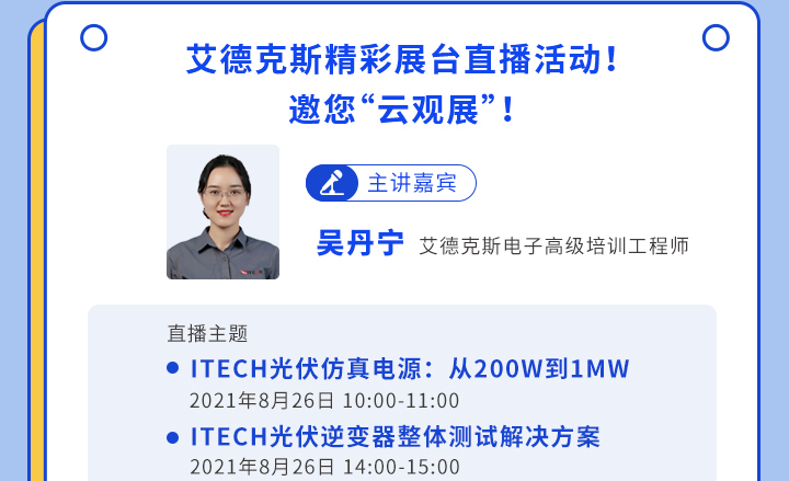 同日,維科網光伏還將為您帶來艾德克斯精彩展臺直播活動!誠摯邀請您“云觀展”!敬請期待!