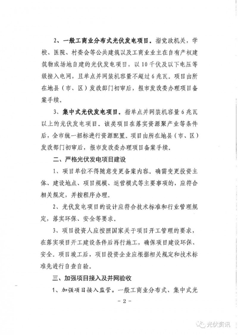 一般工商業(yè)分布式光伏發(fā)電項目:指黨政機關(guān),學校、醫(yī)院、村委會等公共建筑以及工商業(yè)業(yè)主在自有產(chǎn)權(quán)建筑物或場地自建的光伏發(fā)電項目,以10千伏及以下電壓等級接入電網(wǎng),且單點并網(wǎng)裝機容量不超過6兆瓦。項目由所在地縣(市、區(qū))發(fā)改部門初審后,報市發(fā)改委辦理項目備案手續(xù)。