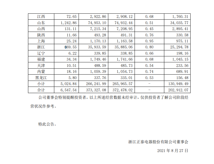 8月27日,正泰發(fā)布浙江正泰電器股份有限公司關(guān)于 2021 年半年度