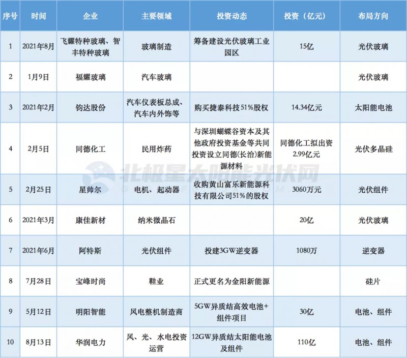 據(jù)統(tǒng)計,僅2021年至今8個多月的時間,已經(jīng)有29家企業(yè)、攜241億元以上巨資進入光伏行業(yè)。