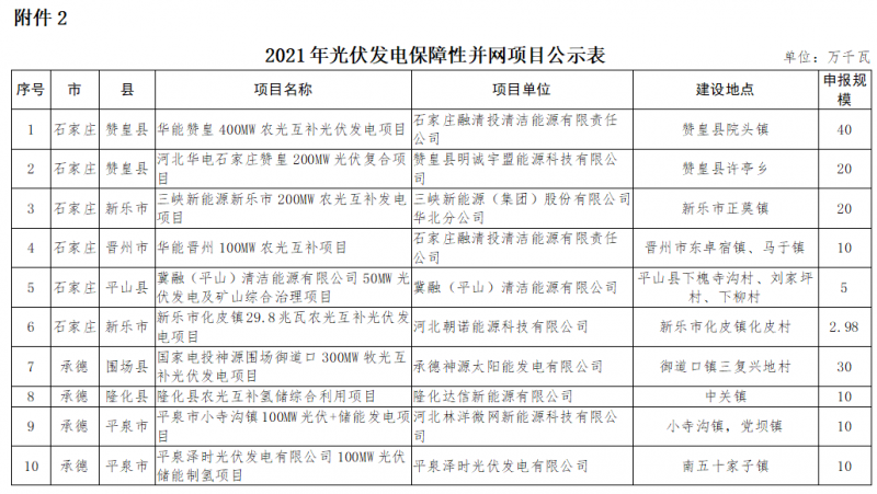 2.2021年光伏發電保障性并網項目公示表