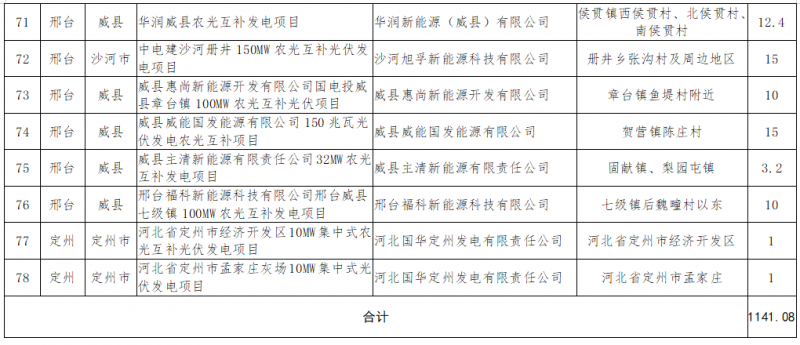 11.4GW!河北光伏發電保障性并網項目公示