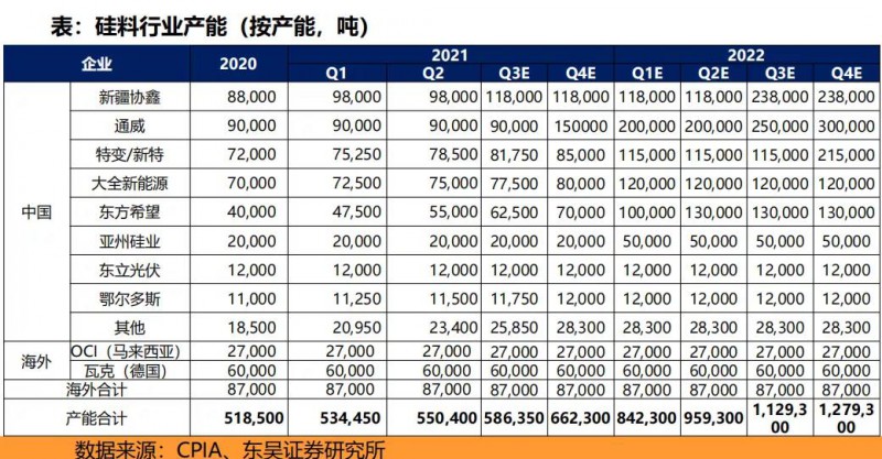 02、預計到2022年末國內硅料產能將翻一番,通威股份、保利協鑫等龍頭企業的規模壁壘愈發提升