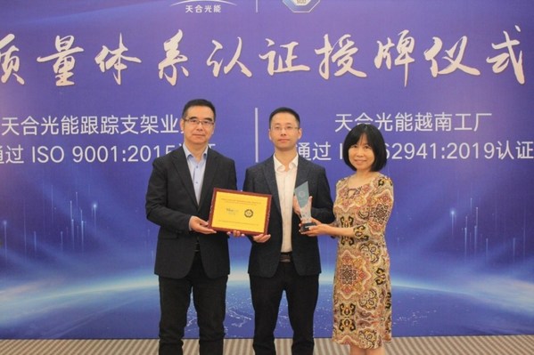 TUV南德為天合光能ISO 9001:2015質(zhì)量管理體系認證跟蹤支架業(yè)務(wù)授牌
