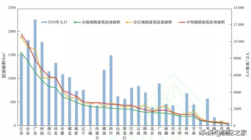 圖、城鎮建筑屋頂面積和人口數量統計圖