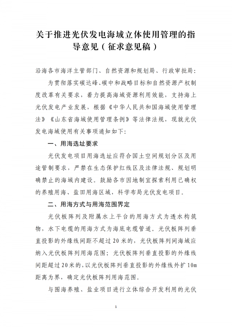 附件:關于推進光伏發電海域使用立體確權的指導意見(征求意見稿)
