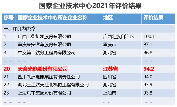 依托國家企業技術中心,天合光能先后被認定為國家知識產權示范企業、國家技術創新示范企業,并與光伏科學與技術國家重點實驗室釋放創新平臺乘法效應,碩果累累。在歷年的國家企業技術中心評價結果中,天合光能始終保持“優秀”等級。此次天合光能在2021年評選中高居全國前列、光伏行業及江蘇省第一,足見國家對天合光能卓越創新實力的高度認可。而這份認可,與天合光能自創立以來至今25年的創新積累是密切相關的。