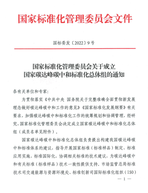 43人!國(guó)家碳達(dá)峰碳中和標(biāo)準(zhǔn)化總體組成立
